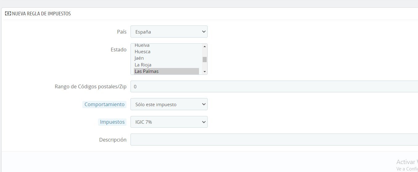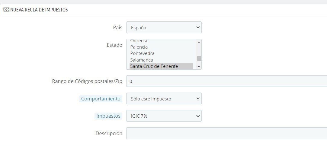 FlashCanarias Posted February 2, 2024 Share Posted February 2, 2024 Buenas tardes. Queria preguntar si desde Prestashop se puede cambiar el impuesto dependiendo del codigo postal del cliente y asi diferencias por ejemplo el IVA del IGIC. Ejemplo: Cliente hace una compra en la tienda de un producto y es de Canarias, el produco deberia de cobrarse con IGIC 7%, en cambio si es de Peninunla ese mismo producto se le deberia de cobrar con IVA 21%. Saben si hay alguna solucion para hacerlo. Un saludo y gracias. Link to comment Share on other sites More sharing options...