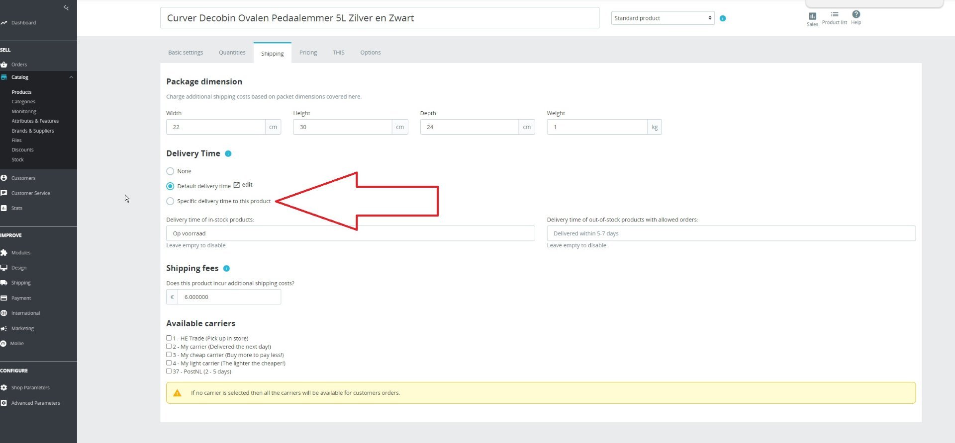 Lizenka Posted February 5, 2024 Share Posted February 5, 2024 Hello, When I upload my products they all have the 'default delivery time'as default setting. Is there is way to make the 'specific delivery time' as default? So that when I upload new products they all have the delivery time set as 'specific delivery time'. I have to change them now one by one. Hopefully someone can help me so I can do it faster. Link to comment Share on other sites More sharing options...