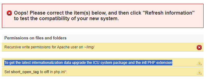 wimotek Posted February 8, 2024 Author Share Posted February 8, 2024 2 hours ago, Prestashop Addict said: Hum many tables are impacted by orders. I suggest you to reinstall PS and in process disable import demo data 😉 hi, i reinstall prestashop on my unbuntu server . found some issues. i resolved two of them. could you tell me how update the icu package and intl php extension? Link to comment Share on other sites More sharing options...