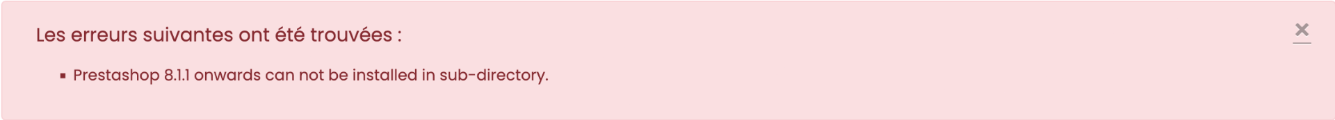 Mediacom87 Posted April 13, 2024 Share Posted April 13, 2024 il y a 25 minutes, femo a dit : I did just what I usually do: go to my cPanel account, Softaculous -> PrestaShop. This easy! Thanks for this clarification. I've just tested it myself and, like you, I'm getting the same error message. I don't know if they're responsible for the versions of the scripts they offer, but perhaps you should ask them for an explanation, especially as you're not looking to install PrestaShop version 8.1.1 but rather the 8.1.5 currently offered by their services. Link to comment Share on other sites More sharing options...