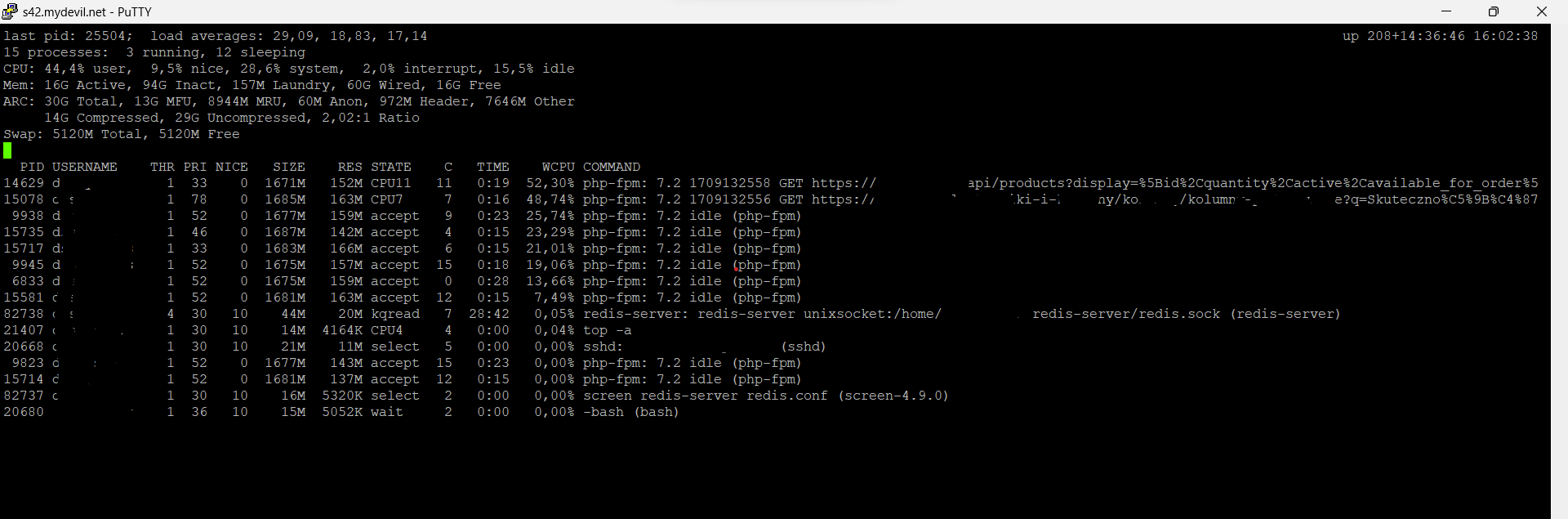 edi_pg Posted February 28, 2024 Share Posted February 28, 2024 Witam, Mam problem z dość mocnym obciążeniem serwera przez prestę. Z tego co widać na załączonym zrzucie, zwykłe wyświetlenie produkty zabiera bardzo dużo pamięci. Czy jest jakiś sposób na sprawdzenie jakie konkretnie polecenia mogą aż tak zamulać serwer? Prestashop: 1.7.6.4 Serwer: Mydevil Byłbym wdzięczny za podpowiedzi. Link to comment Share on other sites More sharing options...