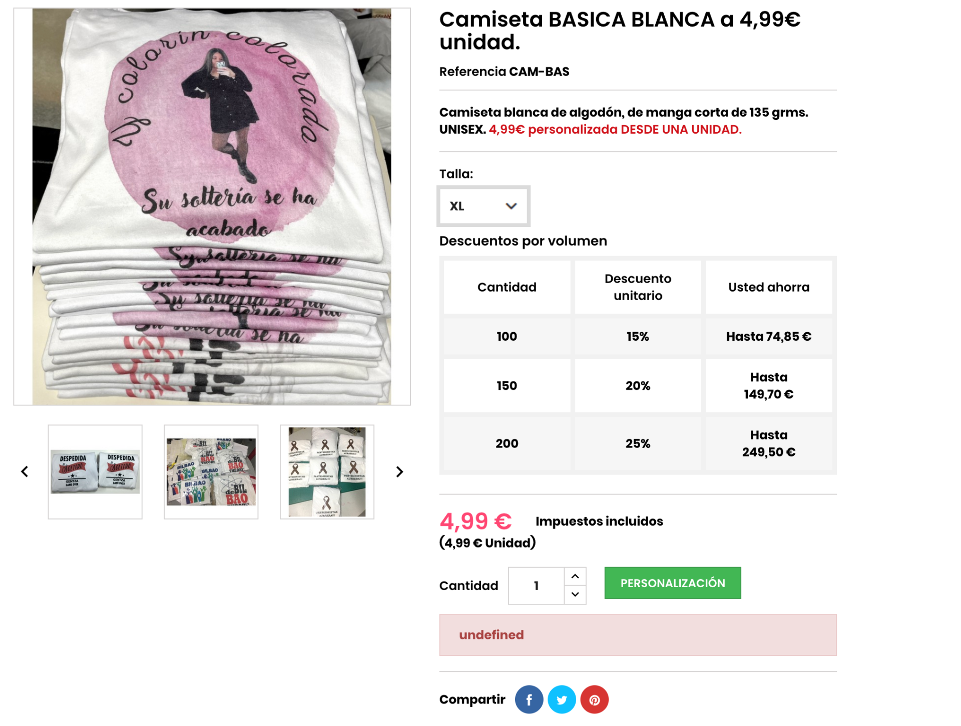 Tron609 Posted March 8, 2024 Share Posted March 8, 2024 Hola, no he encontrado este mismo problema en el foro, por lo que no sé si le habrá ocurrido a alguien más. Tras hacer alguna actualización recientemente (nunca sabes al momento si ha afectado negativamente al funcionamiento), cuando en el Front Office, en un producto que lleve combinaciones, seleccionamos alguna, o incluso si incrementamos el número de unidades del pedido, sale un mensaje en rojo: UNDEFINED (adjunto imagen), y ya no varía el precio por ejemplo, según la combinación elegida o el nº de unidades del pedido. Hasta ahora no sé si el pedido se llega a llevar a cabo, pues ya no he pasado de aquí. En el mismo servidor tengo otras webs también con Prestashop 1.7.8, así que quiero imaginar que el prpblema co e con el servidor si no con la tienda de Prestashop en cuestión. ¿A alguien más le ocurre lo mismo? ¿Alguien sabe como solucionarlo? Muchas gracias anticipadas por cualquier ayuda. Link to comment Share on other sites More sharing options...