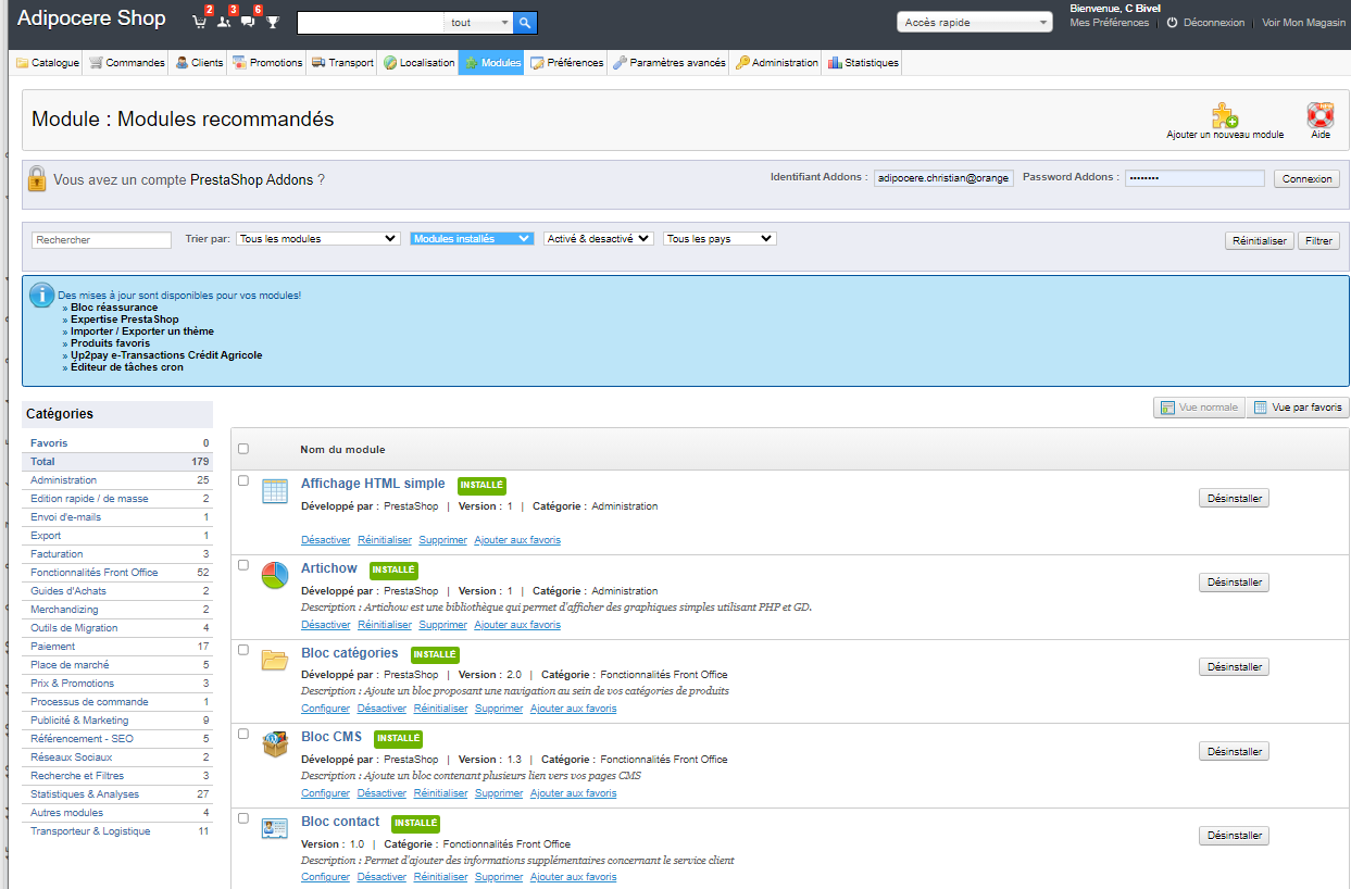 ADIPOCERE Posted March 17, 2024 Author Share Posted March 17, 2024 là sur mon tableau de bord, j'ai un message : Nouvelle version de PrestaShop disponible : Téléchargement 1.6.1 stable ! mais si je clique et le télécharge, est-ce que ça va écraser automatiquement le 1.5 actuel ? Link to comment Share on other sites More sharing options...