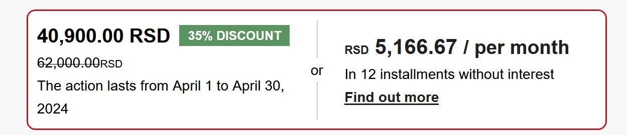 loshmee Posted April 8, 2024 Share Posted April 8, 2024 I'm looking for solution for my problem. I'm required by bank to have two different prices shown on my website for different paying methods. One price shown is for paying in cash or credit cards instantly and the second price shown is for paying with credit cards split in up to 6 monthly payments or paying with cheques. In the attachment you can see the perfect example of what I'm looking for. Thanks in advance for your help! Link to comment Share on other sites More sharing options...