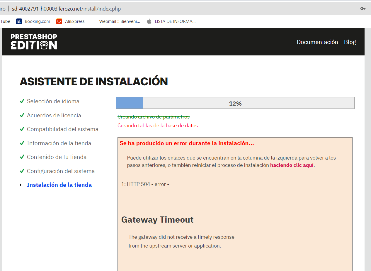 ExpertoPrestaShop Posted April 22, 2024 Share Posted April 22, 2024 Si el hosting no te permite aumentar el timeout como para poder instalar correctamente tu PS desde la web o demora tanto la instalación que da timeout, yo te recomendaría que te fueras a otro hosting. Mas tarde o mas temprano vas a tener problemas de este tipo. También podrías intentar instalar el PS en tu local y luego mover los archivos al servidor. Pero yo nunca consideraría instalar PS por CLI porque un hosting me recomienda hacerlo asi porque tengo problemas al instalarlo por la web. Te dejo varios tutoriales que te podrían ayudar: Link to comment Share on other sites More sharing options...