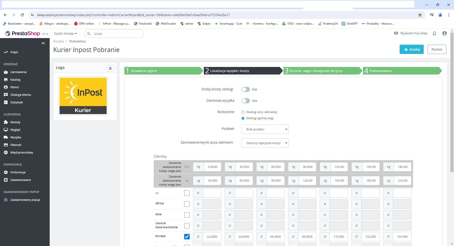 0 Mabcin Posted April 25, 2024 Share Posted April 25, 2024 47 minutes ago, oszman said: @Mabcin Ok tylko jest kwestia tego, że ja muszę mieć zamówienie według wagi zdefiniowane nie według ceny całkowitej. Klient mi zamówi za 15 zł na wagę 1k i co wtedy ? dlatego chyba nie mogę ustawić takiej reguły jaką mi podałeś?? bo jak widać do każdej wagi mam przypisaną cenę w sensie z zakresu. Nie zauważyłem screana Twojego bo z telefonu pisałem. To może zostaw kuriera pobraniowego tak jak masz, że od wagi będzie dobierał odpowiednią stawkę za transport. A po prostu w inny przewożnikach typu np. paczkomat tak jak Ci podałem wyżej, że od ceny całkowitej. I zamówienia od 0 do 300 masz jakaś tam stawkę transportu, a powyżej 300 masz 0 Link to comment Share on other sites More sharing options...