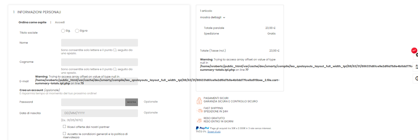 Prestashop Addict Posted May 6, 2024 Share Posted May 6, 2024 This in only warning. Set display_error = off on php.ini Link to comment Share on other sites More sharing options...