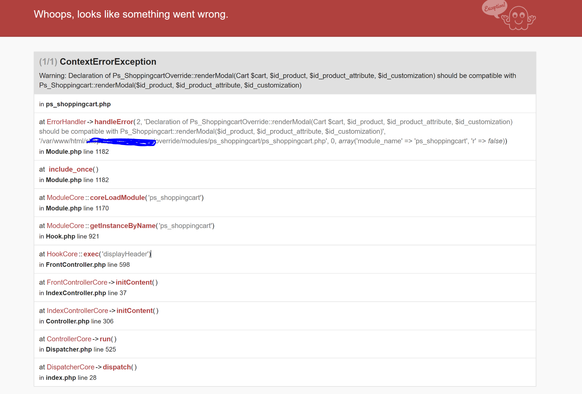 Prestashop Addict Posted June 7, 2024 Share Posted June 7, 2024 You have a module that override ps_shoppingcart::renderModal which is not compatible with the new version of the module. Contact module author. Link to comment Share on other sites More sharing options...