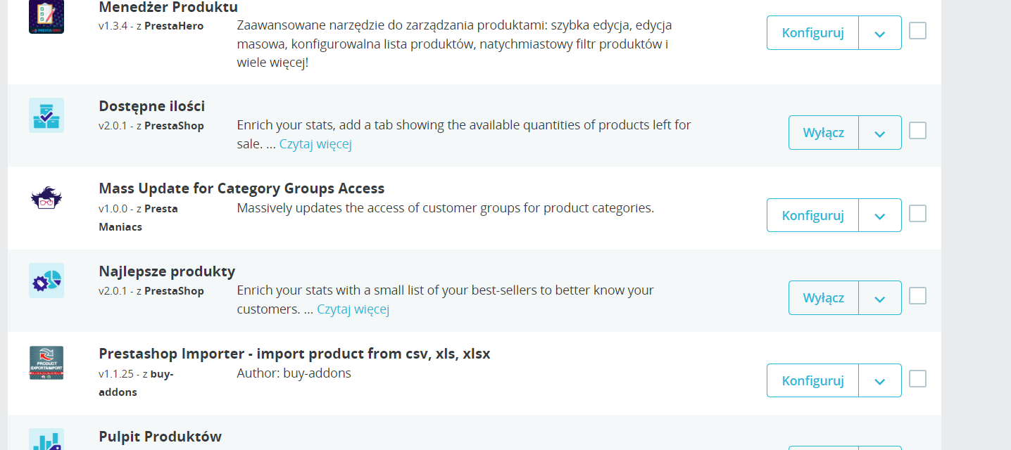 Don. Posted October 11, 2024 Author Share Posted October 11, 2024 Tak, Menedżer Produktu v1.3.4 - z PrestaHero W screenie przesyłam wszystkie jakie są poza tych od Prest'y. Dodam, że to już jest druga taka sytuacja. Przy utworzeniu nowego konta użytkownika problemu nie ma na tym własnie nowym koncie. Link to comment Share on other sites More sharing options...