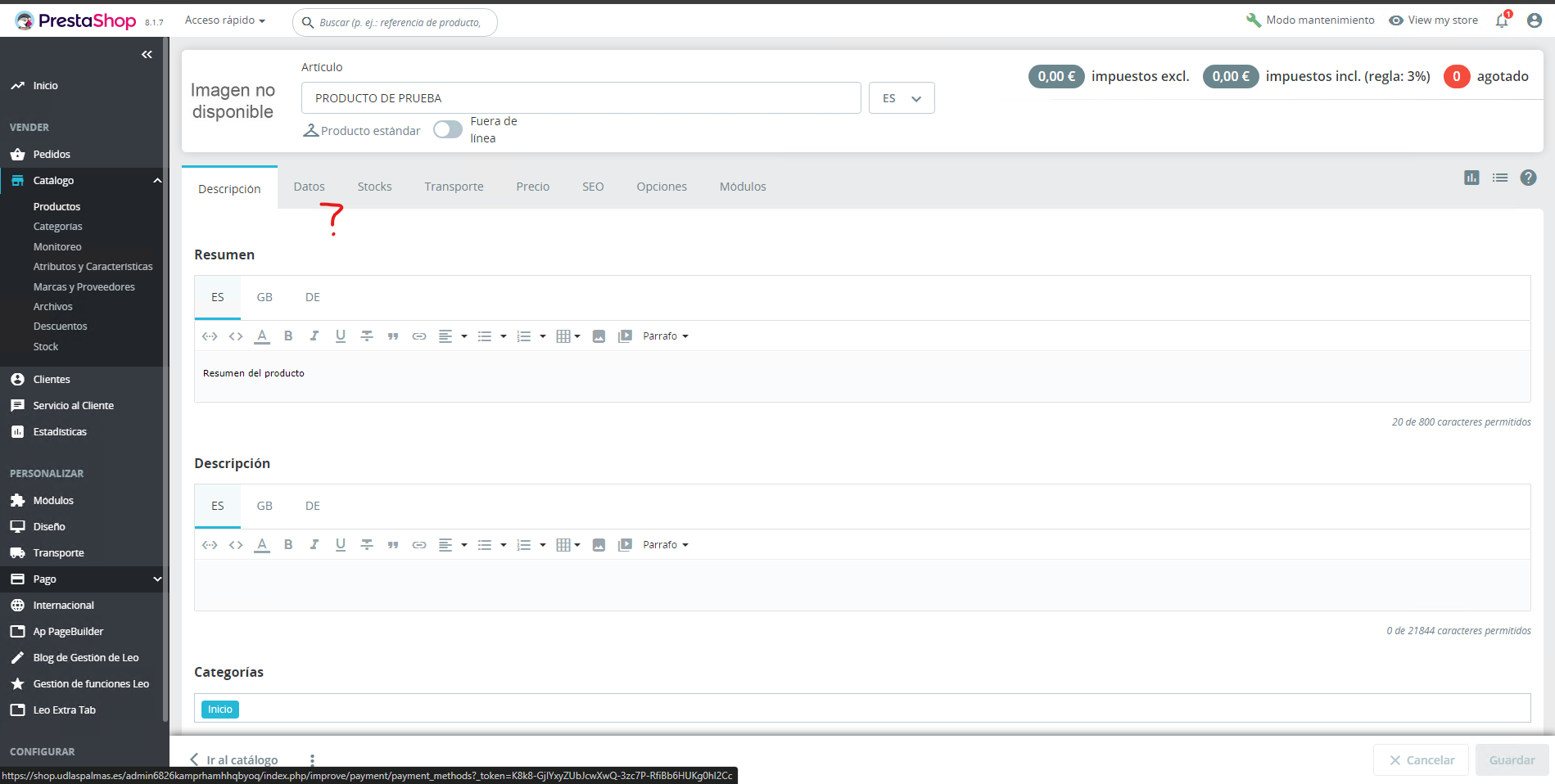 delaghetto Posted September 2, 2024 Share Posted September 2, 2024 (edited) Definitivamente hay algo extraño con esta versión. Somos 3 usuarios, y esto sólo nos ocurre a 2, incluso probando desde diferentes navegadores (chrome, edge y firefox). Al crear un producto nuevo, no nos sale el componente para subir las fotos, y tampoco nos permite guardar el producto. No se si tendrá algo que ver, pero hemos creado unos 100 productos a través de la API, y en todos nos ocurre lo mismo; pero también ocurre al crear un nuevo producto manualmente. Si desactivamos la funcionalidad "Nueva página de producto", se soluciona, así que puede ser algún bug con esta nueva funcionalidad: Edited September 2, 2024 by delaghetto (see edit history) Link to comment Share on other sites More sharing options...
