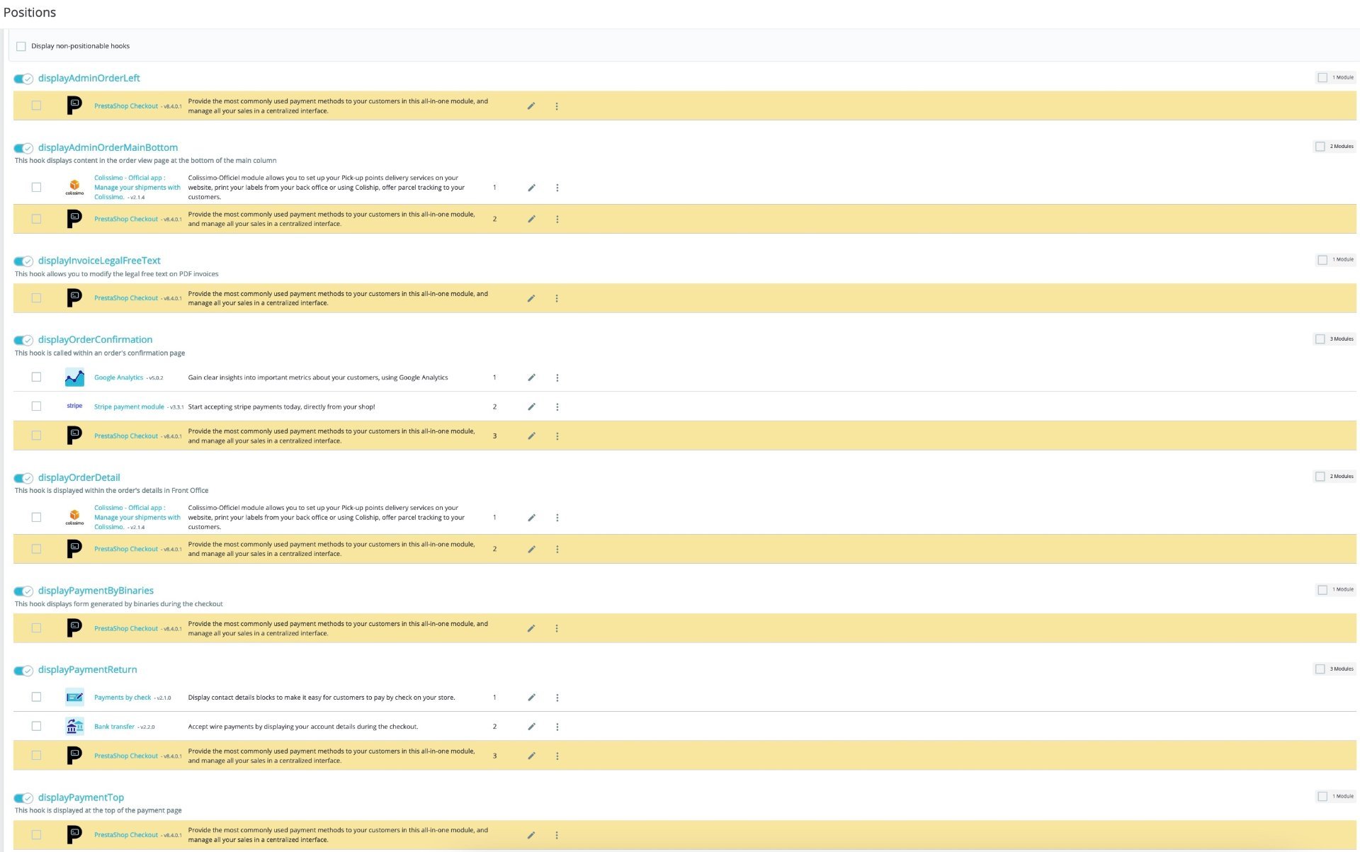 I can't find any module that is responsible for it on this list (screenshot attached).  It is surely related to the Prestashop Checkout module, because when I deactivate this module, these icons are removed.  It looks like since the last update of this module does not have the possibility of changing these settings from the module manager.  Any other ideas on how to fix this?