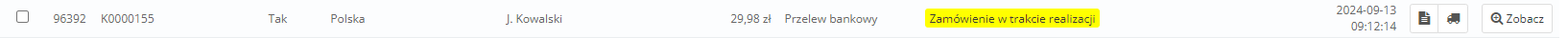 Przy przekazywaniu statusu "realizacja" statusy "znikają" z głównego widoku zamówień:
