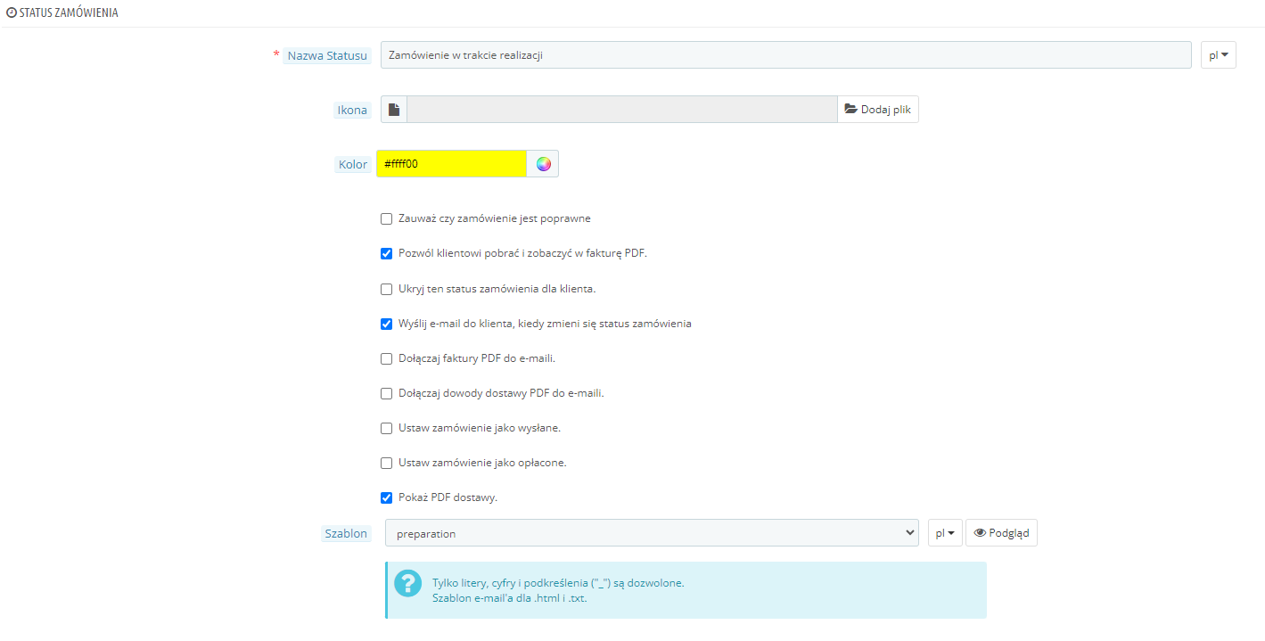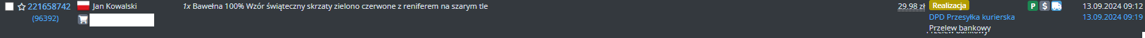 0 Tkaninki Posted September 13, 2024 Author Share Posted September 13, 2024 (edited) Dziękuję za podpowiedzi. Statusy są skonfigurowane poprawnie identycznie jak w innych naszych sklepach. BL Presta Być może szerszy opis sytuacji pomoże w rozwiązaniu problemu. 1. Zamówienia przenoszą się z Presty do Baselinkera ze statusem NOWE. 2. Ustawiamy status REALIZACJA na jednym z zamówień: BL: Presta: 3. Status zmienia się na 0, ale poprawnie zmienia się w szczegółach zamówienia: 4. Co ciekawe po ponownym przeniesieniu zamówienia w Baselinkerze do realizacji w preście status pojawia się już prawidłowy. BL Presta Edited September 13, 2024 by Tkaninki (see edit history) Link to comment Share on other sites More sharing options...