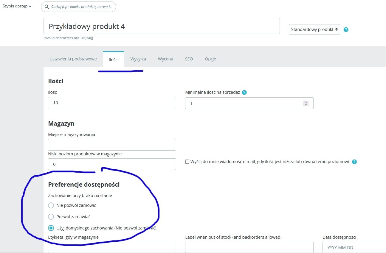 przemex Posted October 4, 2024 Share Posted October 4, 2024 Proszę sprawdzić sam produkt jego edycja Ilości Preferencje dostępności czy nie jest włączone Pozwól zamawiać lub przełączyć na Nie pozwól zamówić. Jak to nie pomoże możesz też na chwilę wyłączyć Włącz zadząnie magazynem Zapisz i po chwili włączyć co przeładuje sam magazyn. Link to comment Share on other sites More sharing options...