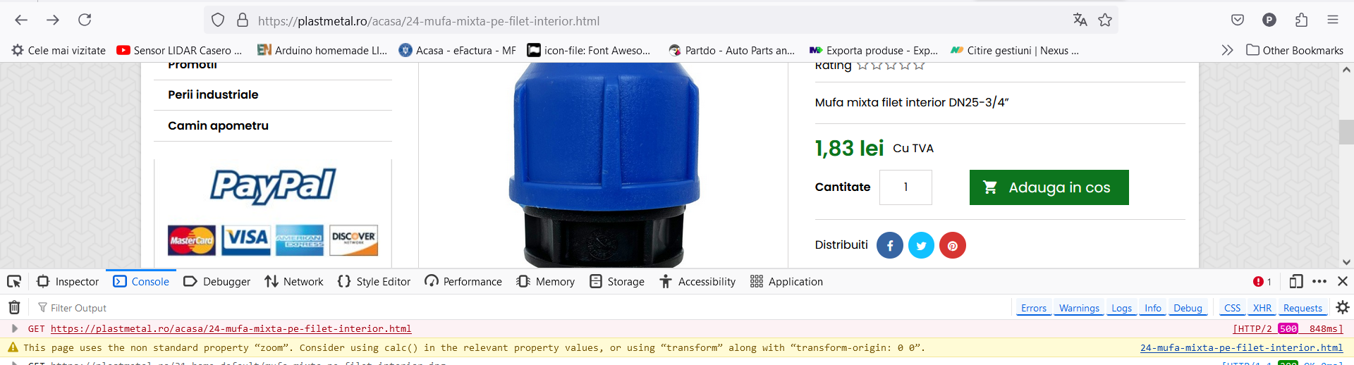 johnel Posted October 22, 2024 Author Share Posted October 22, 2024 Eroarea apare in momentul in care selectez detaliile produsului si vrei sa-l adaugi in cos: https://plastmetal.ro/fitinguri-pp/39-mufa-mixta-dn32-g-1-fe-pn-16.html Link to comment Share on other sites More sharing options...