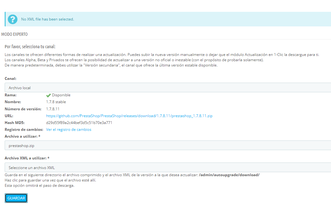 armengual2 Posted November 5, 2024 Author Share Posted November 5, 2024 Por lo que se ve hay versiones que la carpeta admin la cambiaron por la de back-office, siempre ha funcionado bien, pero ahora quiero actualizar y no puedo por el click upgrade me da error md5 y si quiero hacerlo por archivo local me pide el archivo XML que en la carpeta de PrestaShop 1.7.8.11 no viene, osea que estoy estancado. Link to comment Share on other sites More sharing options...