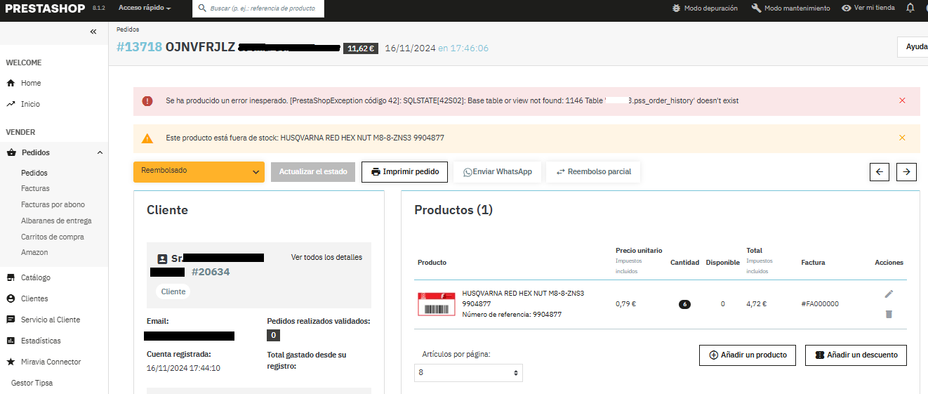 FactoryBike Posted December 2, 2024 Author Share Posted December 2, 2024 Hola @Manuel_GT Al final había un archivo llamado order_history que estaba en un override que tenía sin cambiar el prefijo de la base de datos. Voy a dar el post como solucionado. Gracias a ambos por vuestra ayuda 1 Link to comment Share on other sites More sharing options...