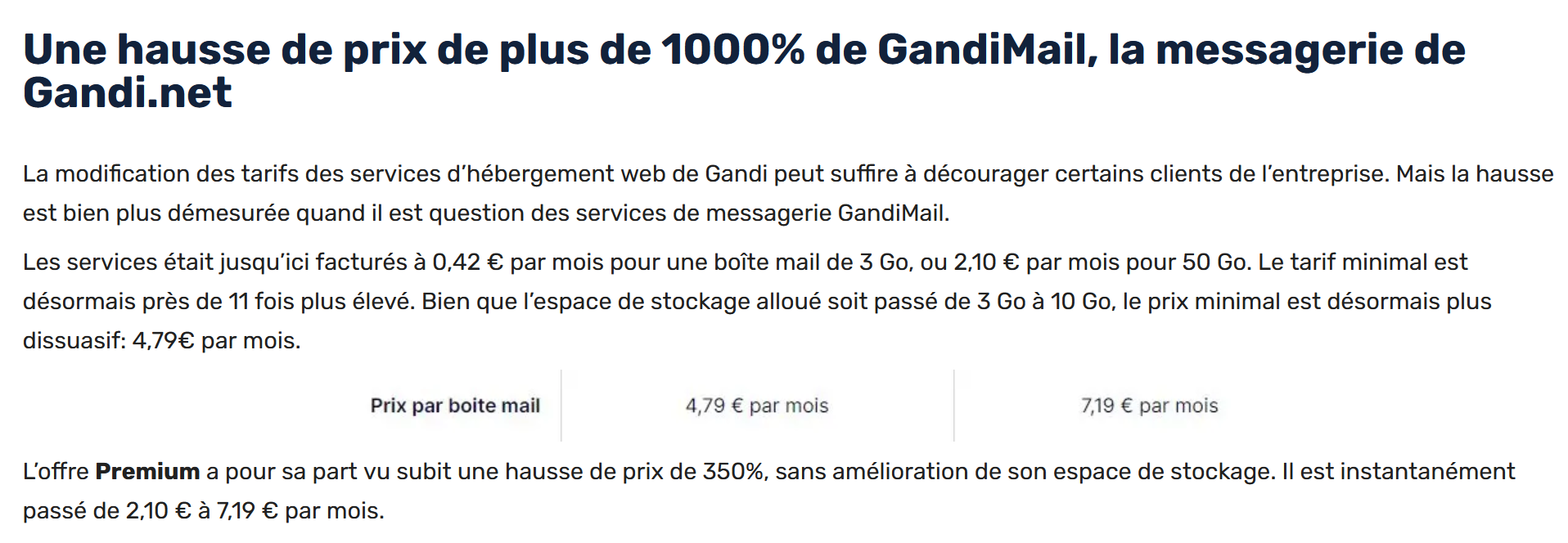 mandrake Posted February 17, 2025 Share Posted February 17, 2025 Bonsoir, allez j'en rajoute une nouvelle couche : C'est sans prévenir que la bonne surprise est arrivée d'o2switch ce matin par mail : Pour celles et ceux qui ont l'offre de base chez eux, qui était à 7 euros HT par mois, et bien c'est fini, terminé, enterré ! Pour avoir la même offre, rebaptisée depuis ce matin "Offre Cloud", il vous en coûtera dorénavant 130% de plus qu'hier ! En effet, l'offre de base, qui ne rapportait pas assez d'argent aux actionnaires italiens (ceux qui ont racheté o2switch qui n'est plus sous pavillon français mais bien italien, comme Prestashop d'ailleurs), a été scindée en 3 offres : l'offre "Grow" à 7 euros HT par mois, une offre low-cost où il ne vaut mieux pas installer un cms du genre prestashop (sauf si vous aimez prendre le risque de perdre des clients car c'est un escargot qui digère mal les cms), une offre "Cloud" à 16 euros HT (anciennement appelée offre Scale'up, qui n'a pas marché du tout, car on s'est vite aperçu que c'était l'offre de base déguisée en super semi-dédiée), qui n'était en fait que l'équivalent de l'offre de base à 7 euros HT par mois, et pour laquelle o2switch a décidé une augmentation de 130%, alors que cette offre avait déjà subit une augmentation de 40% il y a deux ans. C'est le seul hébergeur connu à avoir augmenté ses tarifs de 170% sur 2 années d'exercice ! La seule différence entre l'offre d'hier à 7 euros HT et celle d'aujourd'hui est le nombre de lunes disponibles, qui passent de 4 à 8. Pour information, vous pouviez hier encore acheter une lune pour 1.50e. Même le service commercial ne sait pas quoi répondre, on leur a pondu un script de quelques lignes tentant de justifier les 130% d’augmentation en 1 nuit, mais on sent un gros malaise général chez 02switch et des arguments les plus pourris les uns que les autres. En clair on nous prend pour des pigeons qui gobent tout ce qu'on veut bien leur faire avaler. EN UN PEU PLUS DE DEUX ANS O2 SWITCH N'A CESSÉ D'AUGMENTER SON OFFRE UNIQUE : - 2022 : 72 euros TTC - 2023 : 100.80 euros TTC (+40%) - 2025 : 230.40 euros TTC (+130 %) VOUS TROUVEZ TOUJOURS CELA NORMAL ? 02 SWITCH UN DES MEILLEURS RAPPORTS QUALITÉ/PRIX EN 2022 DEVIENT UN DES HÉBERGEURS LES PLUS CHERS EN FRANCE EN 2025. Voici un comparatif entre l'offre unique d'o2switch à 230,40 € par an et des offres similaires de concurrents français, suisses et allemands dans une gamme de prix proche : Hébergeur / Offre / Plan / Prix annuel (TTC) / Espace disque / Domaines inclus. o2switch Offre unique "Cloud" / 230,40 € / Illimité/ 1 domaine OVHcloud Performance 1 / 239,88 € / 500 Go / 1 domaine Infomaniak Hébergement Web Pro / 215,88 € / 250 Go SSD / 1 domaine LWS Hébergement cPanel XL Premium / 83,40 € / Illimité / 1 domaine A-A Hébergement cPanel XL Premium / 83,40 € / Illimité / 1 domaine Remarques : o2switch : Offre unique avec ressources illimitées, adaptée aux projets nécessitant une grande flexibilité. OVHcloud : Offre "Performance 1" avec 500 Go d'espace et un nom de domaine inclus. Hébergeur français bien établi avec des serveurs localisés en France. Infomaniak : Offre "Hébergement Web Pro" avec 250 Go d'espace SSD et un nom de domaine inclus. Hébergeur suisse reconnu pour son engagement écologique et la sécurité de ses données. LWS : Offre "Hébergement cPanel XL Premium" avec espace disque illimité et un nom de domaine inclus. Serveurs localisés en France. A-A Hébergement : Offre "cPanel XL Premium" avec espace disque illimité et un nom de domaine inclus. Serveurs localisés en France. Rien ne justifie une telle hausse de prix, hormis l'appât du gain, c'est vraiment une grosse déception et une perte de confiance totale vis-à-vis de cet hébergeur. J'ai l'impression d'être racketté. Link to comment Share on other sites More sharing options...