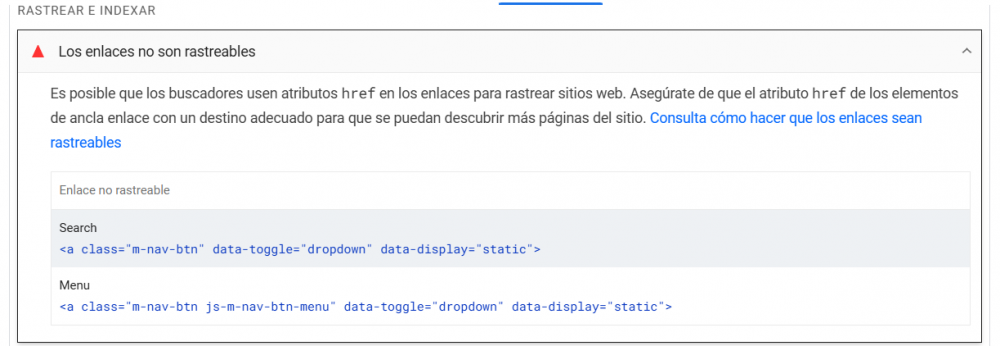 SergioE Posted January 8, 2025 Share Posted January 8, 2025 En 27/12/2024 a las 5:10 PM, elbujias_ dijo: Buenas tardes, Al analizar posibles recomendaciones SEO, creo que indica que hay 2 enlaces que nos son rastreables. Anexo imagen con detalle ¿alguien puede ayudarme? No sé si tengo que tocar el código para solucionarlo... Saludos Hola, Prueba a cambiar el html y en vez de que tengan la etiqueta "a", que cambie por otra estilo button. Ayudate de Chat GPT si quieres para te haga esa conversion de codigo. Ya diras algo. Saludos Link to comment Share on other sites More sharing options...