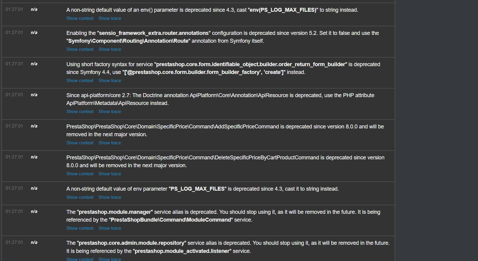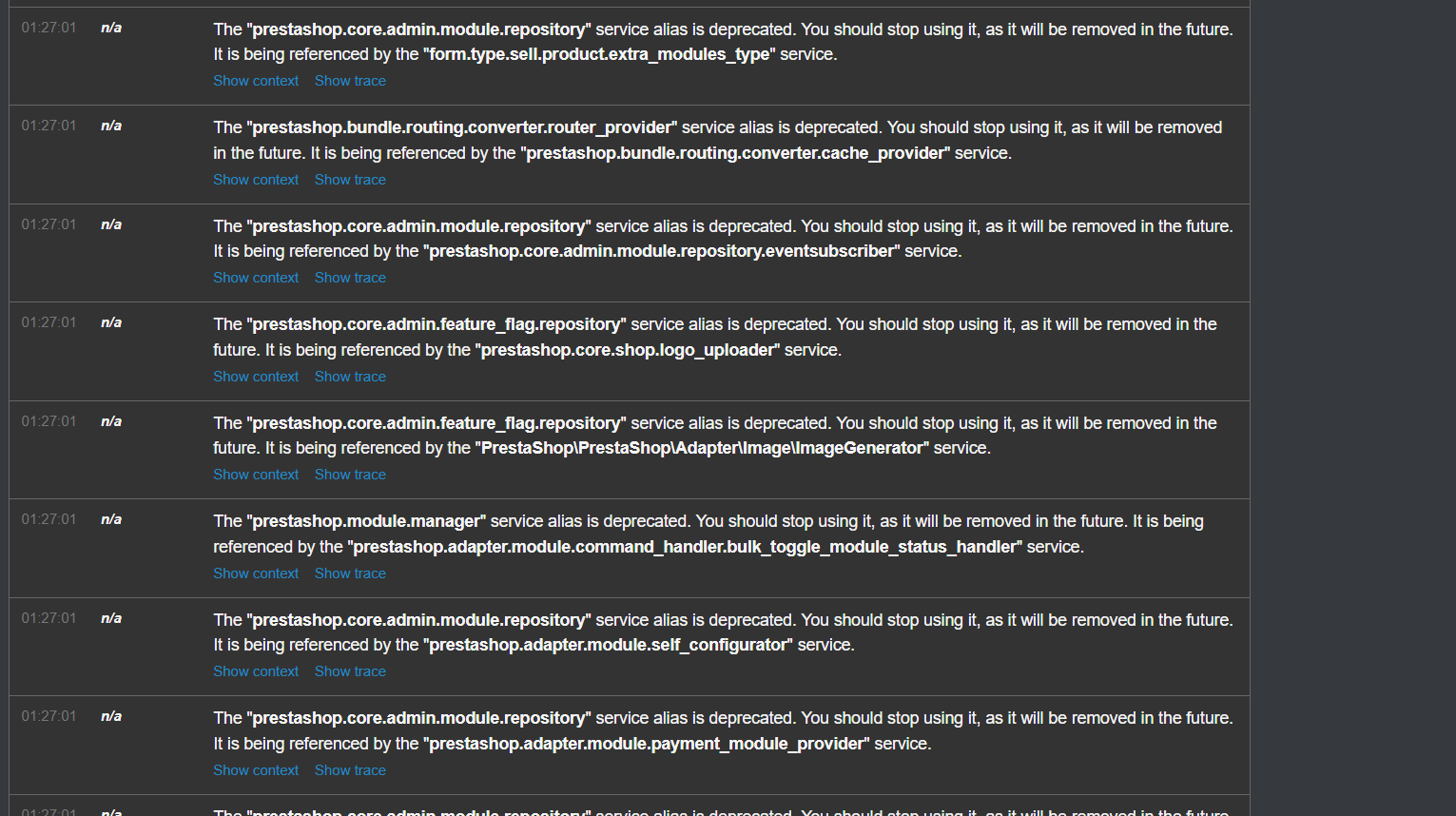 Se ha producido un error inesperado. [PrestaShopException código 0]: SQLSTATE[HY000]: General error: 1116 Too many tables; MariaDB can only use 61 tables in a join.   Adjunto captura de pantalla