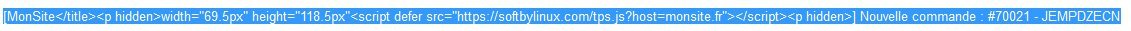 mandrake Posted January 4 Share Posted January 4 Bonjour, j'ai reçu une confirmation de commande et de paiement et sur chaque en-tête il y a un script qui apparait qui n'a rien à faire là (j'ai masqué le nom de mon site et j'ai mis le code en capture d'écran car sinon je suis bloqué sur le forum) Il est en version 1.6 : Quelqu'un aurait la gentillesse de me dire ce que c'est, d'autant ce domaine softbylinux, n'est pas vieux, il a été déposé en septembre. j'aimerai vérifier si il y a un piratage sur le site mais je ne sais pas comment faire; merci pour votre aide et bonne année 2025 ! Link to comment Share on other sites More sharing options...
