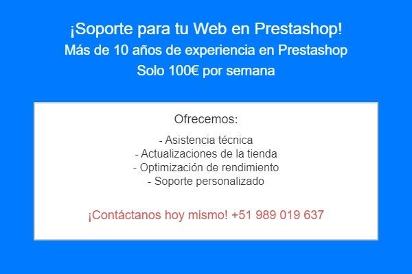 Zitarka Posted January 7 Share Posted January 7 (edited) Tecnico con mas de 10 años de experiencia en Prestashop. Español residente en Peru. Ofrezco soporte para web en Prestashop. Opcional se puede añadir el servicio de integracion de productos en Marketplaces a cambio de una comision de las ventas en los Marketsplaces integrados. Contoacto a traves de Whatsapp al +51989019637. Saludos Edited January 7 by zitarka añadir info (see edit history) Link to comment Share on other sites More sharing options...