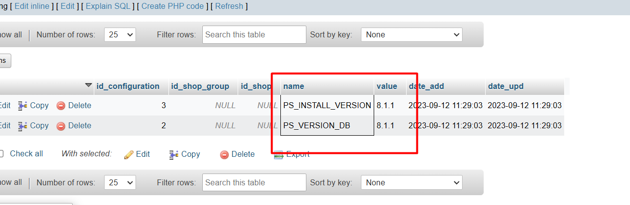 Knowband Plugins Posted February 21, 2025 Share Posted February 21, 2025 If it's only about changing the version in the DB, Then open the PHPMyAdmin and go to the table i.e. ps_configuration (Check the table prefix according to your installation). Then search for the "PS_VERSION_DB" and "PS_INSTALL_VERSION" in the name field. value of both the keys should be the same i.e. According to your Prestashop version i.e. 8.2.0 etc Link to comment Share on other sites More sharing options...