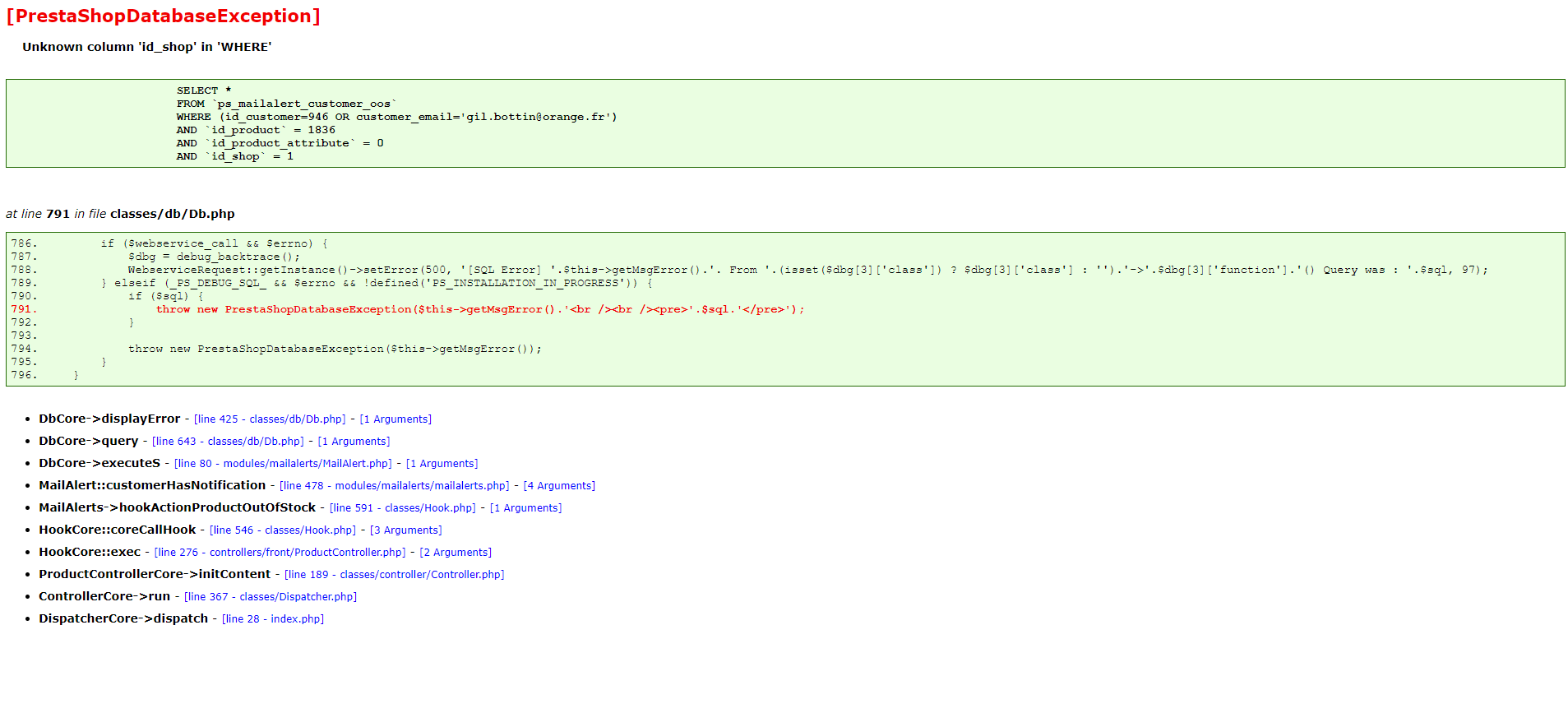 Gilles6688 Posted April 26 Author Share Posted April 26 je me reponds à moi même cela était du au module mailalert! Par contre j'ai toutes ses erreurs encore suite à l'upload de mes fichiers : Link to comment Share on other sites More sharing options...