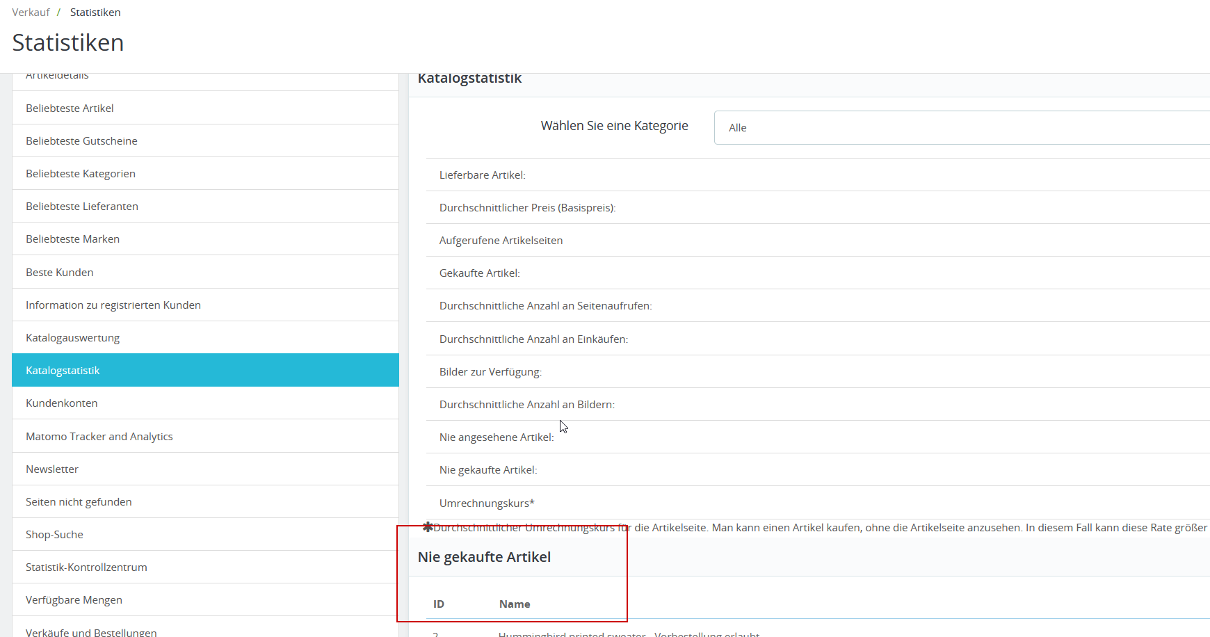 JBW Posted May 26 Share Posted May 26 In der Katalogstatisitk gibt es einen Abschnitt "Nie verkaufte Artikel" In der Katalogauswertung zudem alle Artikel mit Umsatz und vielen weiteren Infos Link to comment Share on other sites More sharing options...