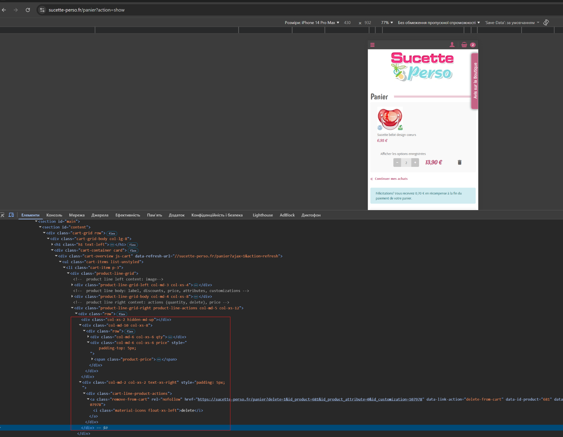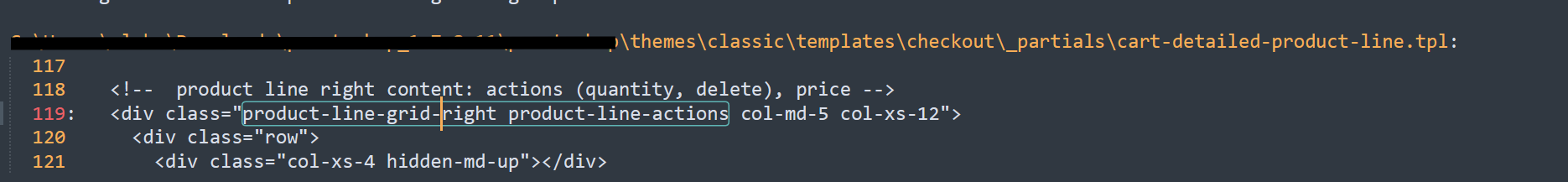freds83 Posted Thursday at 11:37 AM Author Share Posted Thursday at 11:37 AM j'ai cette ligne <div class="product-line-grid-right product-line-actions col-md-6 col-xl-5"> Link to comment Share on other sites More sharing options...