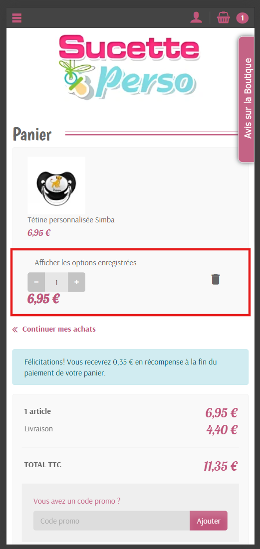 freds83 Posted Thursday at 09:39 AM Author Share Posted Thursday at 09:39 AM Bonjour j'ai perdu la modification est impossible de retrouver le fichier concerné, si une âme charitable peut m'aider Depuis l'url a changé la voici https://sucette-perso.fr Passez un bon jeudi Link to comment Share on other sites More sharing options...