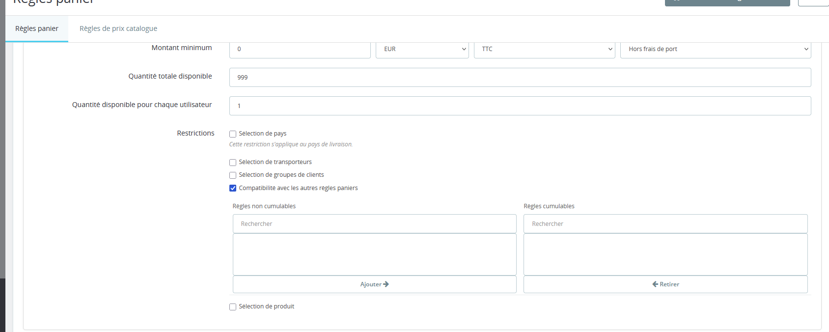 Bug règle panier : Compatibilité avec les autres règles paniers - v8.2.1