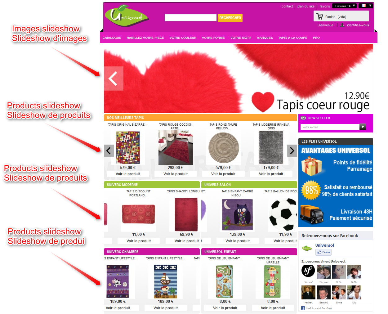 Kali Posted June 3, 2011 Share Posted June 3, 2011 Je viens d'acheter ce slide show et je manque un peu d'infos pour le manipuler.Je suis en train de construire ma boutique et je n'ai jamais installé ni configuré de slide.Tout bêtement je n'ai pas trouvé comment y charger les images qu'on veut montrer.......??? Ou faut-il les télécharger ?Je souhaite installer un slideshow comme montré sur la démo, je le met en "home" et je voudrais qu'il occupe le milieu de la page vers le haut, (voir PJ).Comment faire cela ?Autrement oui il est très complet il y a plein de possibilités, mais qu'est ce que ça rame, il doit être gourmand en ressources ! Link to comment Share on other sites More sharing options...