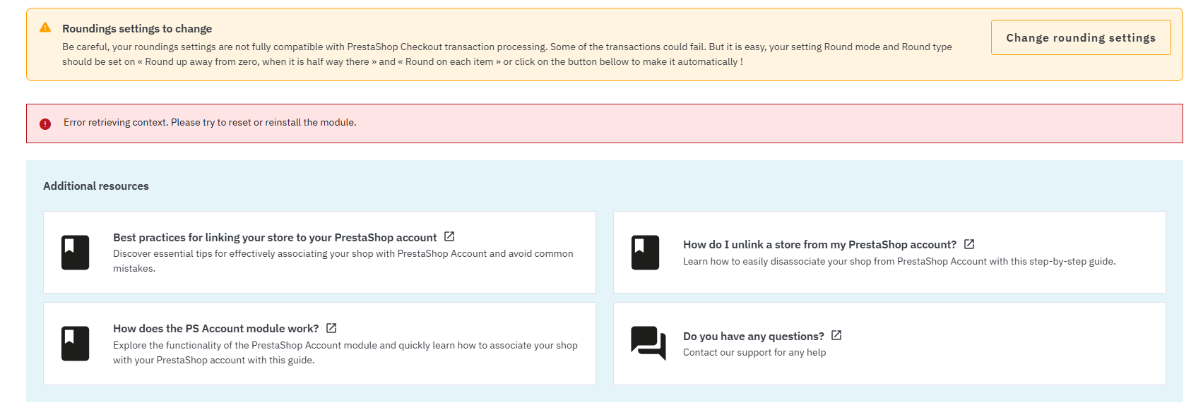strakit Posted September 26, 2025 Share Posted September 26, 2025 (edited) Recently my 8.2.1 instalation made update on several native module, including ps-account. After, a message popped up saying it required a reset of said module. Although i tried it several times, the message keeps popping up. Tried it on the pop up message, on modules manager, clean caches (both site and server) and yet the message persists. Anyone has a clue? Edited September 26, 2025 by strakit corrected PS version (see edit history) Link to comment Share on other sites More sharing options...