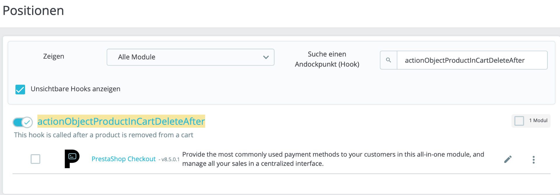 El Patron Posted Saturday at 02:30 PM Share Posted Saturday at 02:30 PM Usual suspect: a module hooked on cart-delete Go to: Design → Positions (in older builds, “Improve → Design → Positions”). Search the hook also select: Display non-positionable hooks In the search bar at the top-right of that page, type one of: actionObjectProductInCartDeleteAfter or (for legacy modules) actionDeleteProductInCartAfter If a module is registered on that hook, it will appear in the results table. Sometimes the problem module is using an older or slightly different hook name: actionObjectCartDeleteAfter actionCartSave actionObjectCartRemoveProductAfter actionCartUpdateQuantityBefore Link to comment Share on other sites More sharing options...
