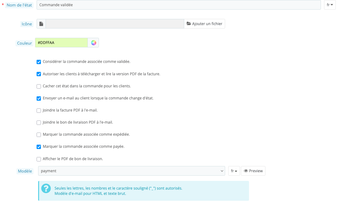 Marquys Posted 9 hours ago Author Share Posted 9 hours ago Merci pour la réponse. J'ai le statut Livrée qui a les options suivantes de cochées : Considérer la commande associée comme validée. Autoriser les clients à télécharger et lire la version PDF de la facture. Cacher cet état dans la commande pour les clients. Marquer la commande associée comme payée. Afficher le PDF de bon de livraison. Néanmoins le téléchargement n'est pas actif alors que l'option "Considérer la commande associée comme validée." est coché. C'est la seule conditions pour que le téléchargement s'active ? Link to comment Share on other sites More sharing options...