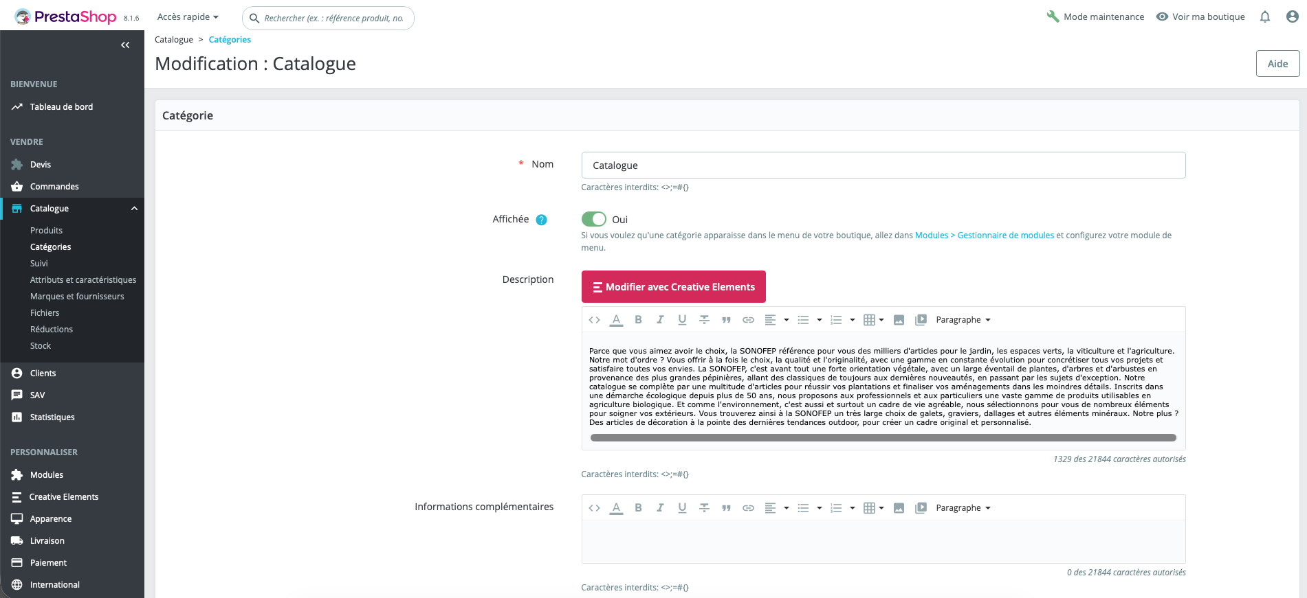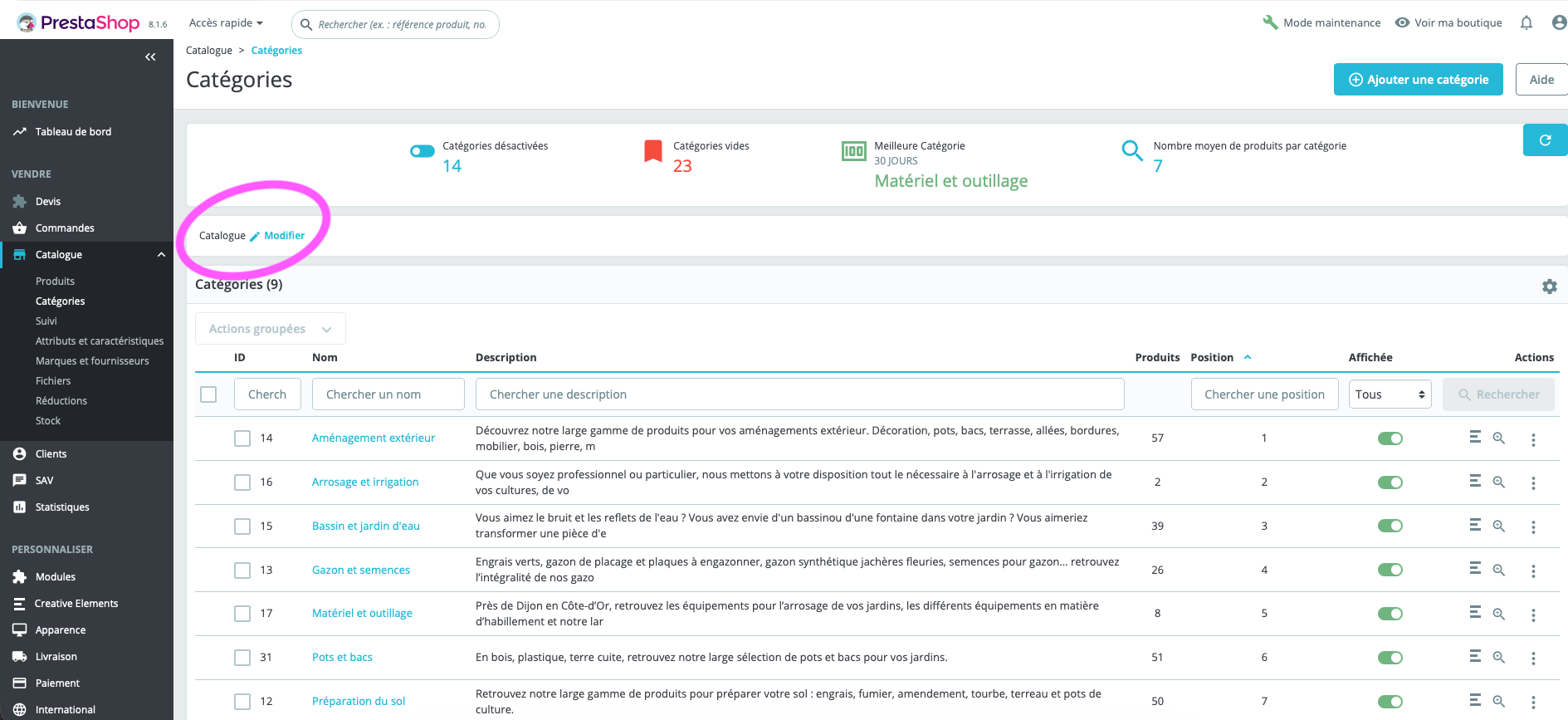 juanrojas Posted 3 hours ago Share Posted 3 hours ago En 17/11/2025 a las 09:42, Pepi21000 dijo: Bonjour, Cela fait un moment que je cherche mais sans réponse. Je voudrais savoir s'il serait possible de changer le lien lorsque l'on clic sur le catalogue racine des produits prestashop. Actuellement quand je clic dessus, j'arrive sur ma page Index et non sur ma page catalogue. Auriez-vous une solution ? Merci d'avance ! Bonjour, si vous faites référence à l'URL conviviale, alors rendez-vous à l'endroit que vous indiquez (crayon) et modifiez l'URL conviviale pour cette catégorie. Link to comment Share on other sites More sharing options...