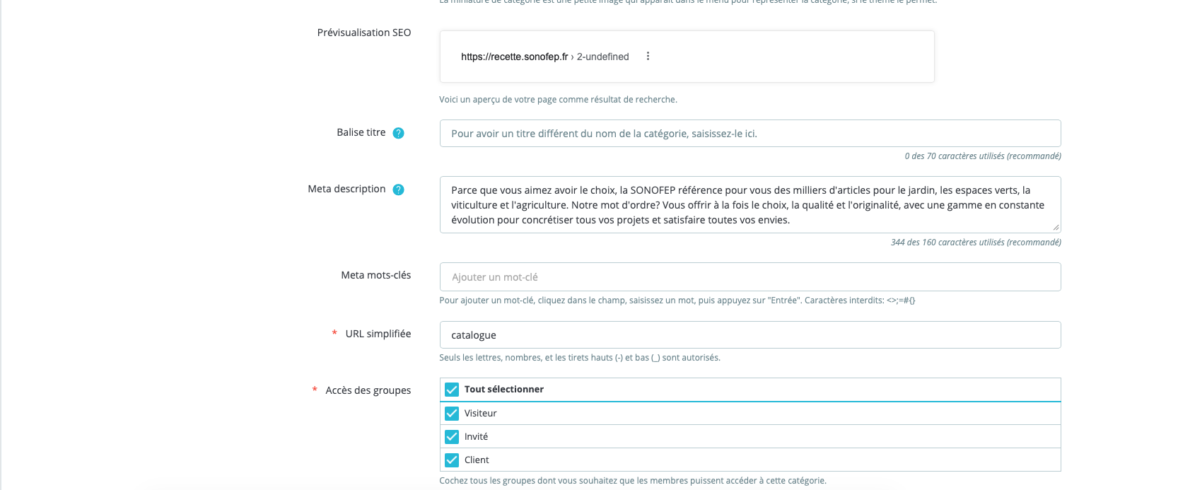 Innov-appli Posted 8 hours ago Share Posted 8 hours ago @Pepi21000 Pourquoi ne pas faire un niveau supplémentaire dans les catégories. Par exemple : 1 er niveau: accueil (racine du site et des catégories) 2: catalogue 3: à partir de là l'ensemble de vos catégories qui sont disponibles dans votre catalogue Comme cela nous retrouvons la catégorie "Catalogue" avec une url réécrite et rassemblant les sous-catégories que vous vouliez sur une page catalogue. Dans le fil d'ariane nous retrouvons par exemple : Accueil / Catalogue Accueil / Catalogue / Aménagements ps: Généralement touchées à la racine, des catégories n'est pas une bonne option. Si le site est en cours de développement, cela ne posera pas de problème par rapport aux liens et SEO, par contre s'il est déjà en production attention à la partie SEO et maillage. J'espère vous avoir aiguillé un peu plus. Bonne journée. Cdt, Link to comment Share on other sites More sharing options...