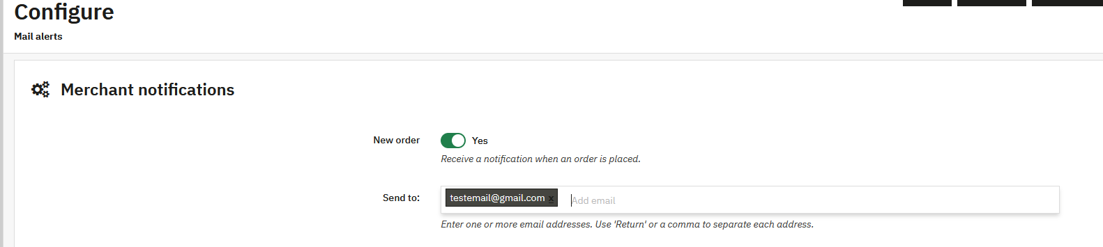 dinesh badrukhiya Posted December 15 Share Posted December 15 On 12/8/2025 at 2:06 PM, MartinTaylor said: Im new to prestashop and have Prestashop 9.01 installed. I have set up SMTP email to send email. When setting up Mail Alert module version 3.01. It will not accept an email address in the section to Merchant Notifications New Orders. When inserting a correct email address and pressing the save button I get the red error at the top of the screen saying: Please enter one (or more) email address for the new order notification. Any pointers in where I am going wrong In the Mail Alerts module, after typing the email address you must press the Enter (Return) key so the email becomes a “tag” (you’ll see it appear as a small boxed label). Only after that should you click Save. If you just type the email and click Save without pressing Enter, PrestaShop treats the field as empty and shows the error. Hope that helps. Thanks Link to comment Share on other sites More sharing options...
