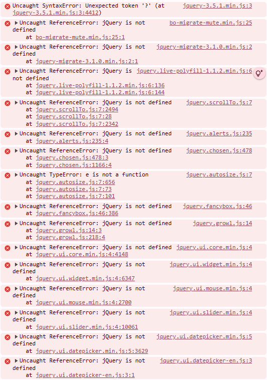 I shared a picture of my dashboard with the loading symbol in the top left that won't go away, a picture of about half the error logs that show up on every page that has that same loading icon or page issues, and the error I get attempting to enter debug mode.