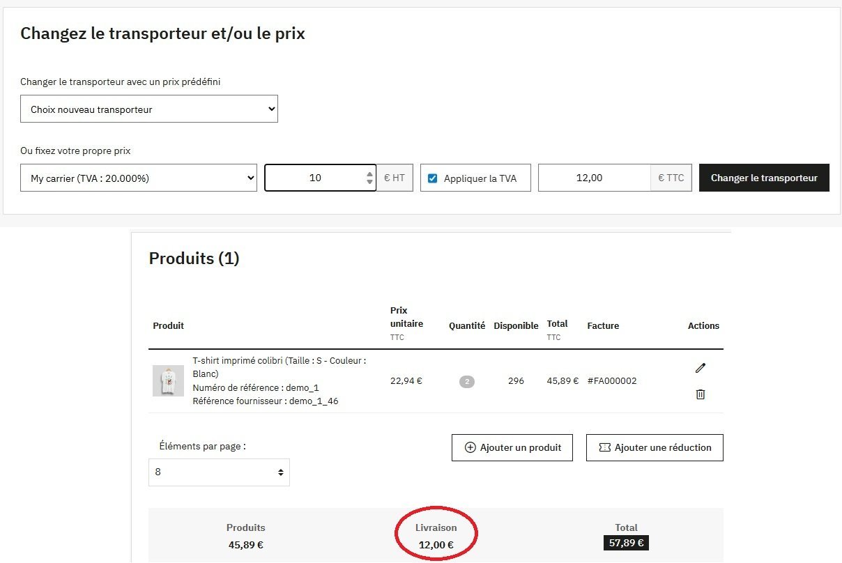 coeos.pro Posted Tuesday at 12:56 PM Share Posted Tuesday at 12:56 PM Ce module permet de changer depuis le back office le transporteur et de modifier le coût de la livraison (soit selon le calcul des frais de port soit selon votre choix). Il est ainsi possible de changer de transporteur et de facturer le transport : HT TTC Sans changement de prix à 0 € (gratuit) La facturation sans changement de prix et à 0 € sont à considérer comme un cadeau commercial que vous pouvez faire a vos clients. Dans la liste des transporteurs vous aurez donc 4 choix possibles par transporteur et tous les transporteurs apparaitront dans la liste, même ceux qui sont désactivés, évidemment si un transporteur est désactivé c'est indiqué dans la liste juste à coté du nom du transporteur. Pour chaque commande vous pouvez changer le transporteur facturer la livraison au juste prix faire un cadeau commercial en changeant le transporteur tout en conservant les frais de ports voir même les offrir. Page commande de votre back office : NOUVEAUTE version 1.4.0 (compatible 1.6 à 9) : il est maintenant possible de facturer le transport selon une valeur de votre choix, avec ou sans taxes : Le module est disponible exclusivement sur coeos.pro : https://www.coeos.pro/fr/modules-prestashop/128-changement-de-transporteur.html Link to comment Share on other sites More sharing options...
