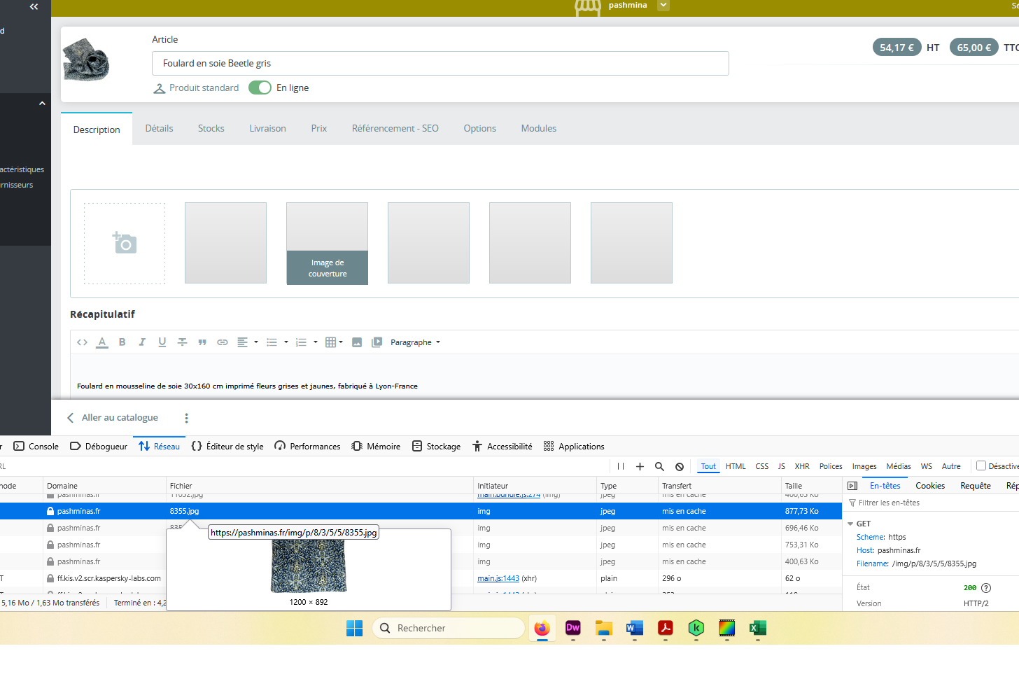 Laur31000 Posted 9 hours ago Author Share Posted 9 hours ago J'ai regeneré les images produit J'ai vidé le cache F12 > Réseau les images sont bien en https le lien https://pashminas.fr/img/p/8/3/5/5/8355.jpg affiche bien l'image mais pas dans le BO Le probleme est decrit ici : https://github.com/PrestaShop/PrestaShop/pull/35947 Link to comment Share on other sites More sharing options...