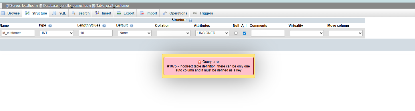 wepresta Posted 17 hours ago Share Posted 17 hours ago 1 minute ago, VWinterswijk said: Not able to add auto increment Check that id_customer is defined as INT NOT NULL AUTO_INCREMENT PRIMARY KEY, then reset the AUTO_INCREMENT to MAX(id_customer) + 1. Also make sure there is no row with id_customer = 0, as that can block new inserts. Once fixed, customer registration should work again. Link to comment Share on other sites More sharing options...