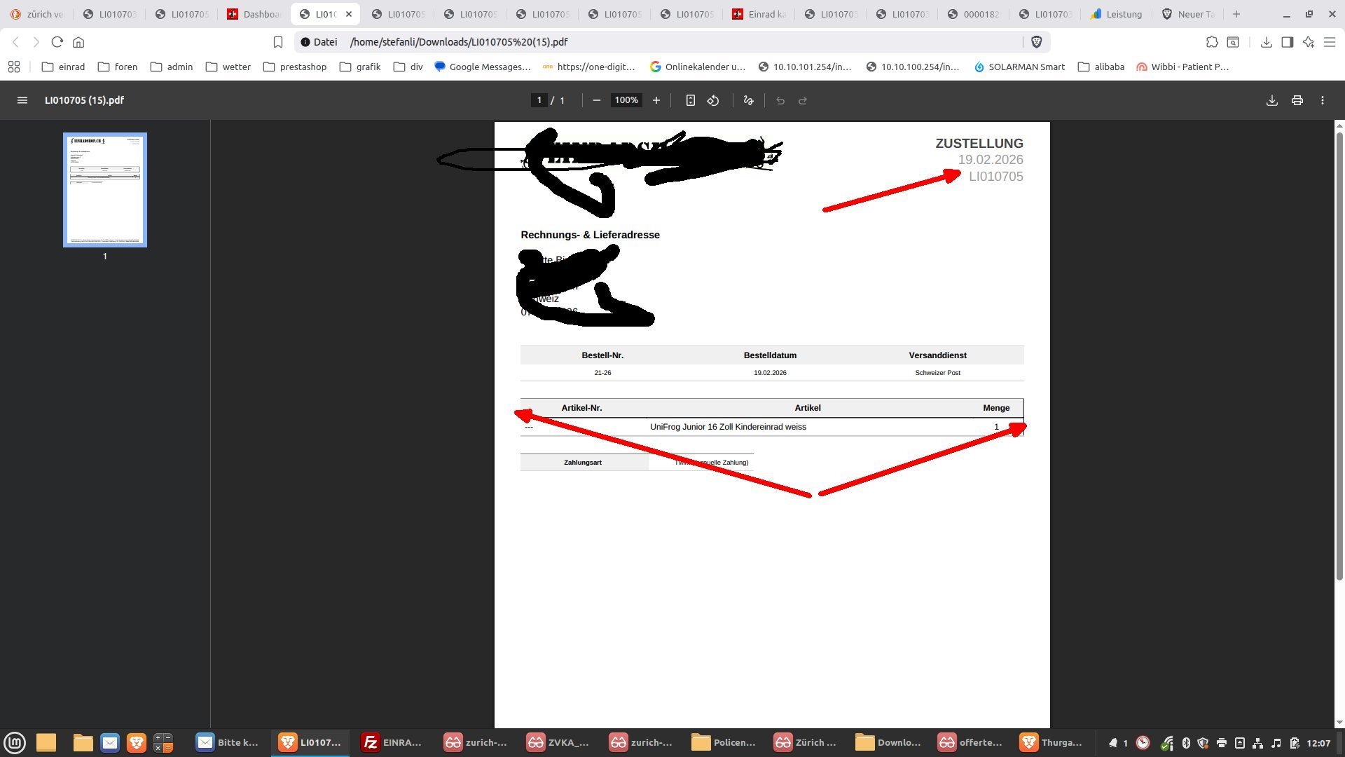 unikum Posted 4 hours ago Share Posted 4 hours ago Guten Tag Ich habe mich mal an das Thema Prestashop Lieferschein und Rechnungstemplates gewagt, da ich mein externer PDF Invoice Generator ausschalten möchte, weil er sich mit einem anderen Programm nicht verträgt (overwriting). Nun, einige Dinge konnte ich schon ändern. Wo es bei mir harzt: 1. Header oben Rechts beim Lieferschein. Ich möchte da die Rechnungsnummer einsetzen. Rechnung und Lieferschein benutzen ja die gleiche Datei header.tpl. Dort ist nichts zu finden. Wo genau wird diese Lieferscheinnummer definiert ? Ich möchte LI 10705 durch die Bestellnr. ersetzen oder ganz weglassen. Ich habe alle .tpl Dateien durchforstet und nichts gefunden. Bin da echt ratlos wo das definiert wird ? Das Wort Zustellung kann ich bestimmt in den PDF übersetzungen ändern. Das ist kein Ding. Etwas weiteres nervt: Die Tabellenränder. Auf dem Screenshot zu sehen: Bei der Produktauflistung hat es recht einen Tabellenrand und links ist er offen. Warum und wieso ist mir nicht klar. War von Beginn weg so. Darstellungsproblem ? Danke für Eure Tipps Viele Grüsse Stefan Link to comment Share on other sites More sharing options...