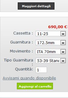 123gas Posted December 22, 2011 Share Posted December 22, 2011 perché evidentemente hai settato male gli attributi ti faccio un esempio pratico il mio negozio va per taglia e modello 1,2,3,4 etc esempio non puoi settare: Taglia 12-18-24-30-36 mesi modello 1 ma : Taglia 12 mesi modello 1 Taglia 18 mesi modello 1 Taglia 24 mesi modello 1 e così via non ho capito bene faccio un esempio io ho un prodotto ruote per biciclette, il cliente deve scegliere il colore e la compatibilità se il cliente dalla scheda prodotto seleziona colore: rosso compatibilità: shimano quando lo aggiunge al carrello e di conseguenza in fattura, viene riportato solo il colore e non la compatibilità scelta allego due schermate per capirci Link to comment Share on other sites More sharing options...