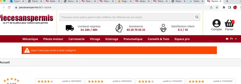 Mühldorfer-france Posted April 11 Share Posted April 11 2 hours ago, moiettoi said: Bonjour, pour réactiver le support il faut payer 338 € c'est une blague ? donc je passe par le forum de ce module élu meilleur module pour le meilleur et le pire ... perte de seo importante depuis son installation, avez-vous rencontrer cette conséquence aussi ? vous etes sous quelle version de prestashop? Link to comment Share on other sites More sharing options...