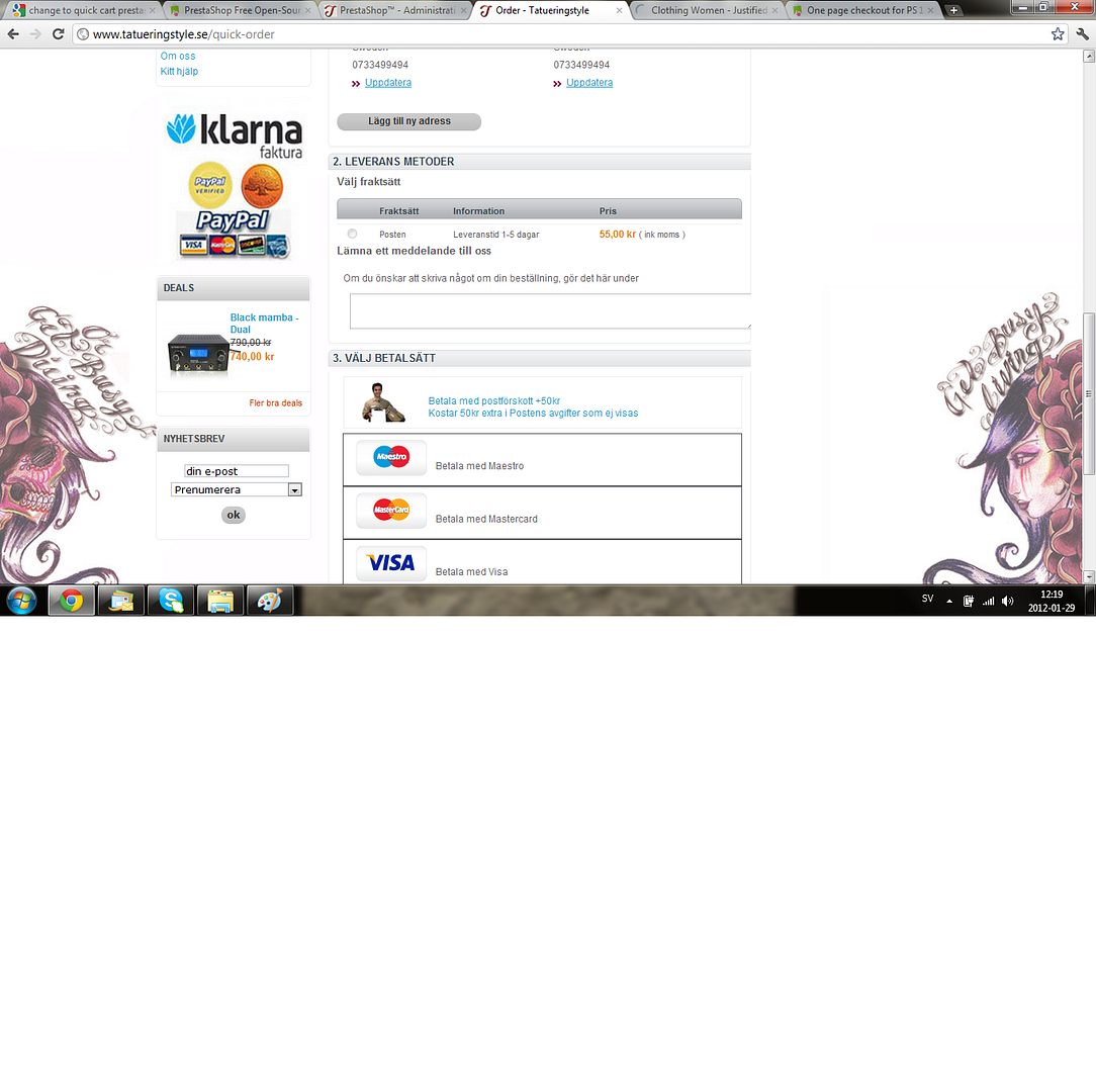 teriff Posted January 29, 2012 Share Posted January 29, 2012 I have the same problem and it makes it confusing to customers. I use version: 1.4.6.2 , and find it hard to believe that everyone that runs prestashop sites that are at least 6 months old have this problem and that there is no solution to the problem It happens only when a new customer that have added items to the cart saves there address and then the check box for the shipping method is unboxed and there is no way to make it checked in again. Before saving the addres: http://i283.photobucket.com/albums/kk319/teriff/checkout.png After saving the addres: http://i283.photobucket.com/albums/kk319/teriff/checkout1.png So please inform , how this can be fixed Link to comment Share on other sites More sharing options...
