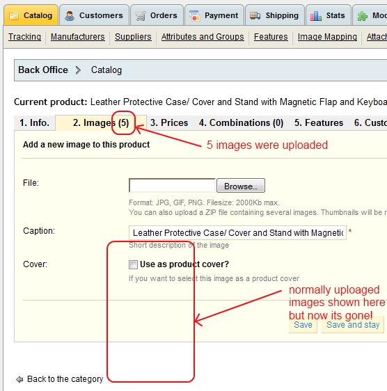 Biaggi Posted July 31, 2011 Share Posted July 31, 2011 When I uploaded several images for my products, in normal condition, I could see the images appeared under "image tab", but now I could not see any images appeared although I had just uploaded 5 images in BO. For a clearer picture of my problem, attached herewith a screen capture of my problem. Any help is highly appreciated. Thank you. Hi did u find a solution to this problem or anybody else? Link to comment Share on other sites More sharing options...