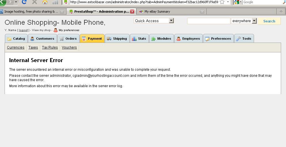PrestaDesigner.com Posted July 25, 2011 Share Posted July 25, 2011 Hello, When are you accessing the module tab are you getting the same error? Dear All, While accessing PAYMENT TAB from admin panel I am getting error massage as " Internal Server Error". My folder permissions are set to 755. But still I am getting error. Please find attached image for referance. I am using PS 1.4.3. Other menus are appearing properly but only for payment tab I am getting error. Please suggest the solution. Thanks Vilas Link to comment Share on other sites More sharing options...