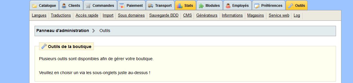Je suppose que vous parlez du Back Office, je n'ai pas ce que vous dites dans Outils, voici ma barre (PJ : Outils).